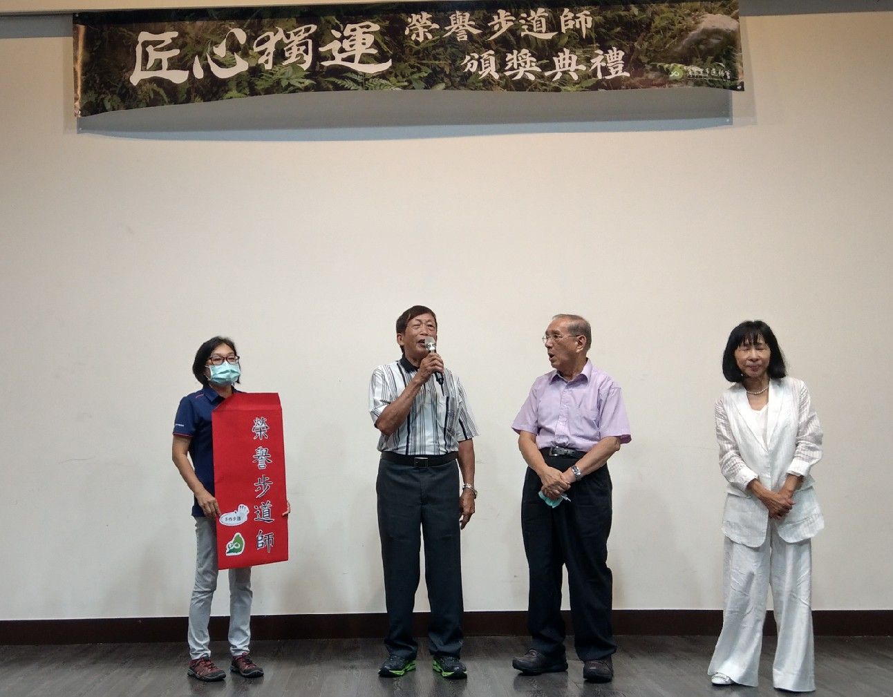 今日的頒獎典禮,聚集了公私部門的貴賓,像是第一屆榮譽步道師羅吉榮、伍玉龍、農委會主委陳吉仲、文化部主任秘書陳登欽、水利署署長賴建信、林務局副局長林澔貞、營建署國家公園組組長張維銓、林務局新竹林管處處長夏榮生、水保局臺北分局分局長簡俊發、水保局臺中分局分局長黃振全、新北市觀旅局局長張其強、屏東縣原民處副處長蔡文進、台灣公共廣播電視集團董事長陳郁秀、創集團總經理何碩等人齊聚一堂,顯見用手作步道,傳遞臺灣自然環境工藝之美,已成為公私單位的共同理念,而文化部陳主秘也承諾,會努力將步道師技藝納入文化資產的項目,全力保存這項珍貴技藝。