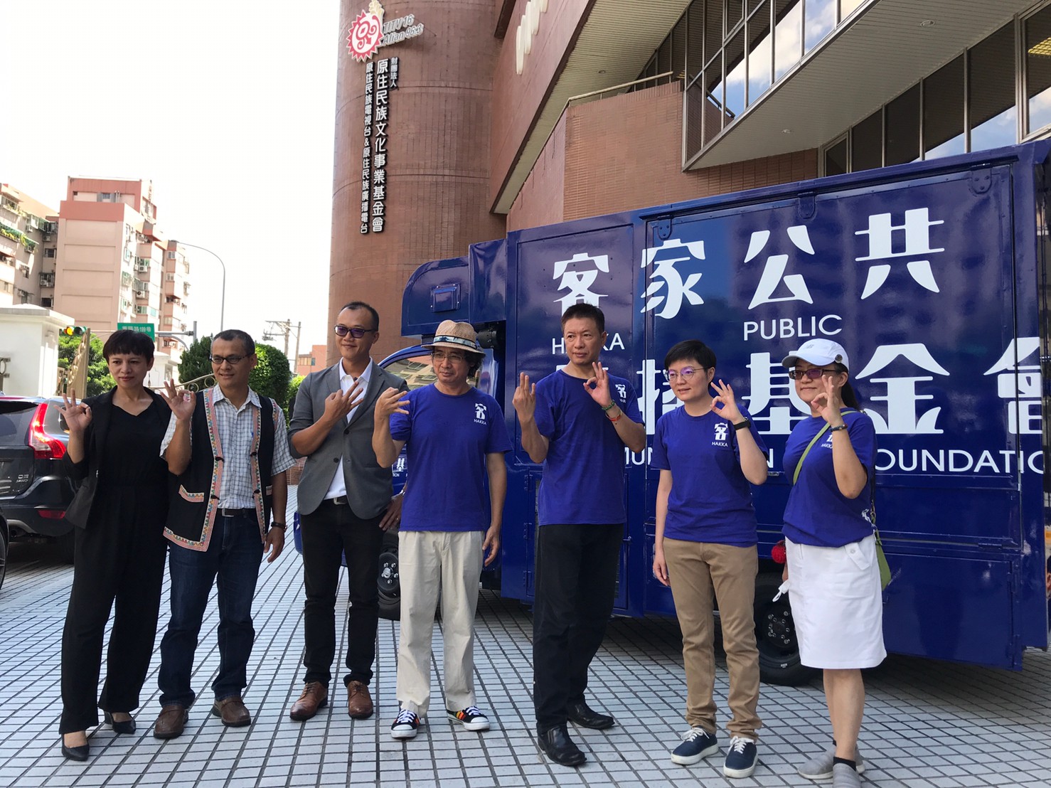 「我們住在山上,你們就住在山腳下!」這句話道盡原住民和客家人生活環境密不可分的緣分。今(12)日客家公共傳播基金會董事長陳邦畛(陳板)及總經理徐智俊率領全體員工前往姊妹基金會的原住民族文化事業基金會交流拜訪,客傳會更首度將講客進鄉團行動直播車開至現場,搶先和原住民好朋友分享這份熱騰騰的成果。客家公共傳播基金會陳董事長表示,非常榮幸能和成立逾13年的原文會密切交流合作,希望成立不到1年的客傳會能快速學習成長,共同擦出更多精彩原客火花。