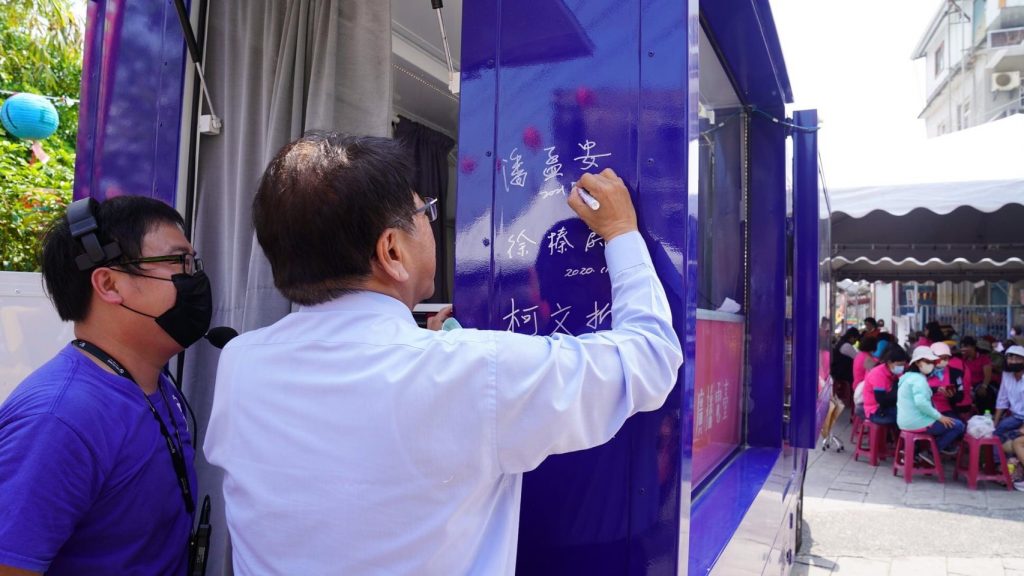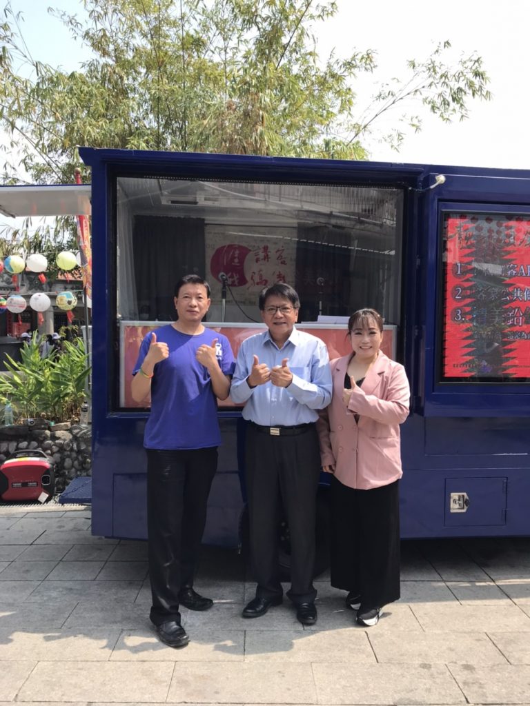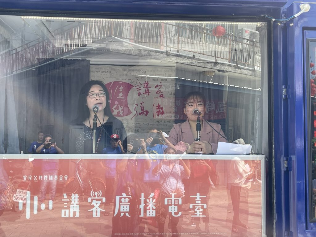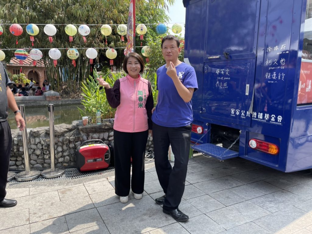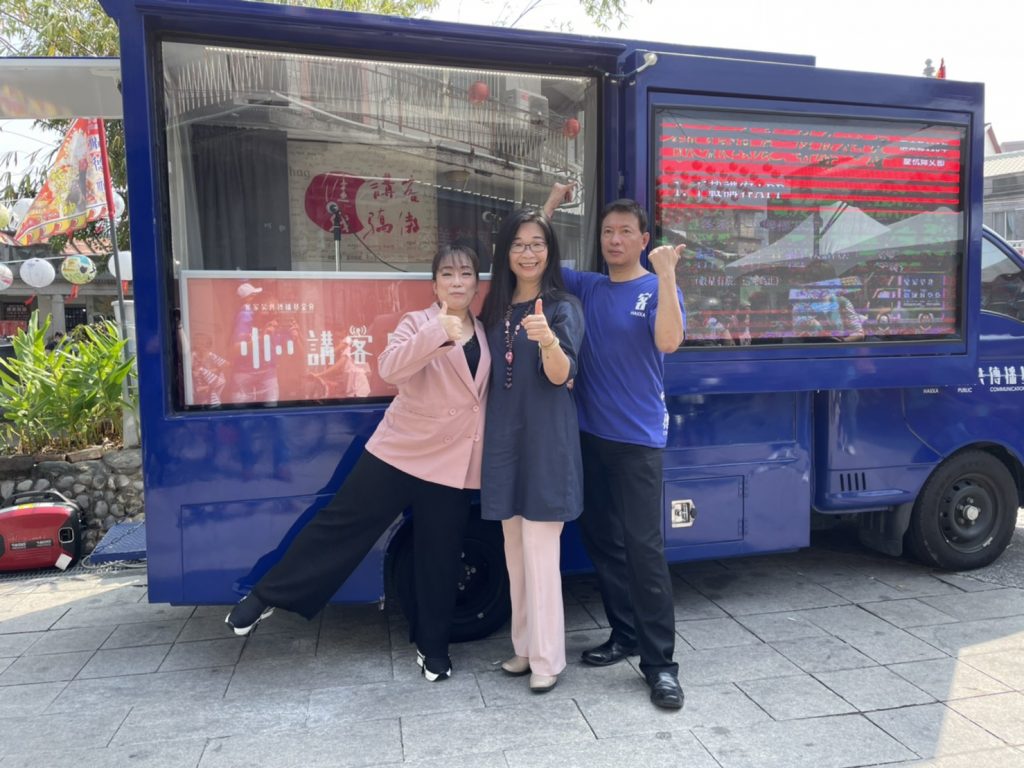 今日的「靚靚頭尾、屏屏好客」活動,一早由六堆的婦女團體及精彩表演拉開序幕,緊接著一系列的燒腦實境解謎活動「穿越客庄解謎區」、「靚靚頭尾體驗區」、「佳冬老街-屏屏好客市集區」、「細妹按靚舞台區」熱鬧展開,講客號也邀請六堆的大咖貴賓們登上講客號,像是屏東縣長潘孟安、屏東縣副縣長吳麗雪、立法委員莊瑞雄、周春米、屏東縣政府客家事務處處長陳麗萍、茄冬文史協會理事長楊景謀、音樂工作者顏志文等人,和大家在空中暢聊六堆客家文化,以及為何客家女性從古至今,總是受到大家喜愛及肯定,此外,屏東縣長潘孟安在受訪結束後,熱情地在講客號車身親筆簽名,為講客號送上最真誠的祝福,希望講客號能繼續深入客庄,宣傳客家語言文化,擔任「客家外交大使」!