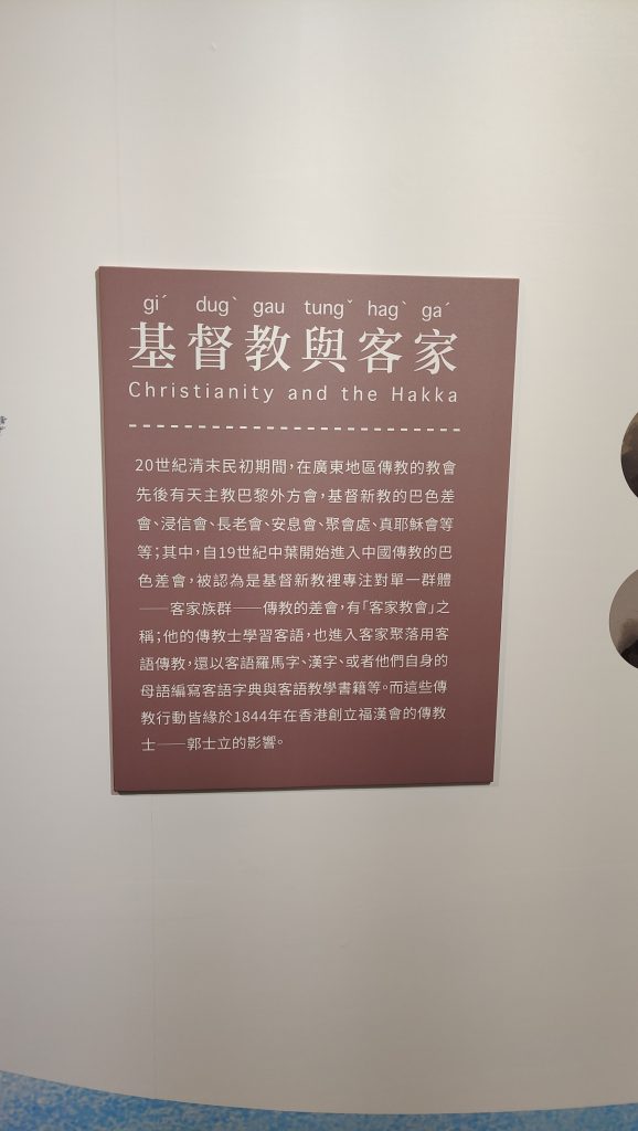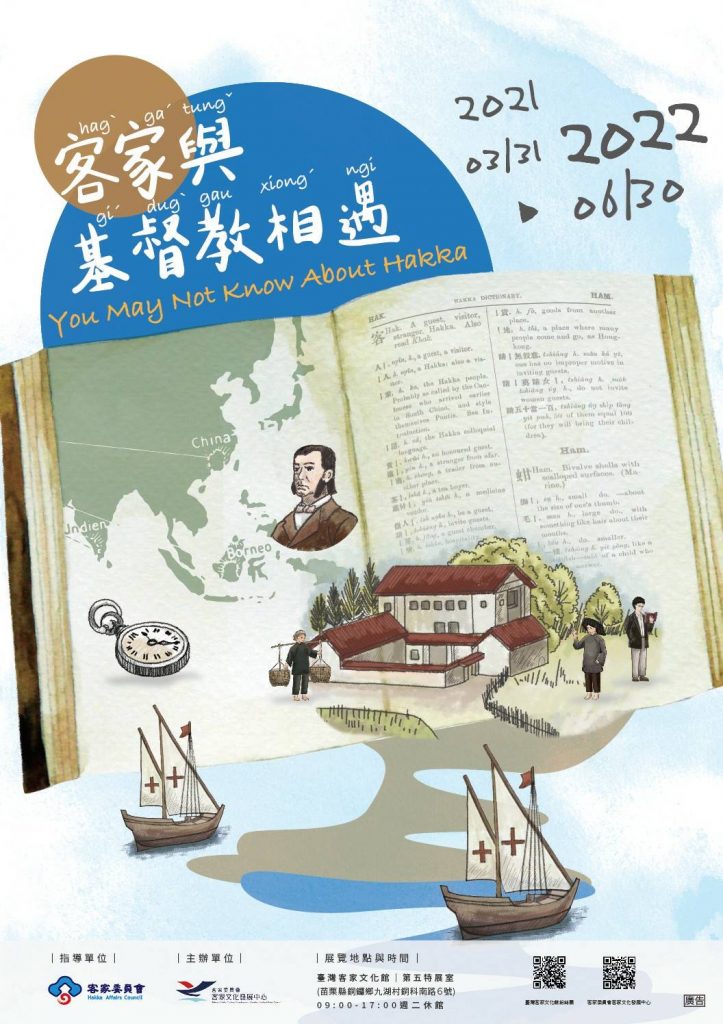 「客家與基督教相遇特展」由模擬現代瑞士巴色差會圖書館的一隅,作為「客家與基督教相遇」的開端,走入巴色差會文本紀錄中,呈現19世紀西方傳教士為了傳教,藉由客英辭典的編寫,記錄了近代客家人的生活樣貌,包括客家女性服飾、教育的特色,並藉由「語言」保存這樣一個共同目標,展現出客家人在臺灣這片土地上,積極推廣客語傳承的軌跡。
