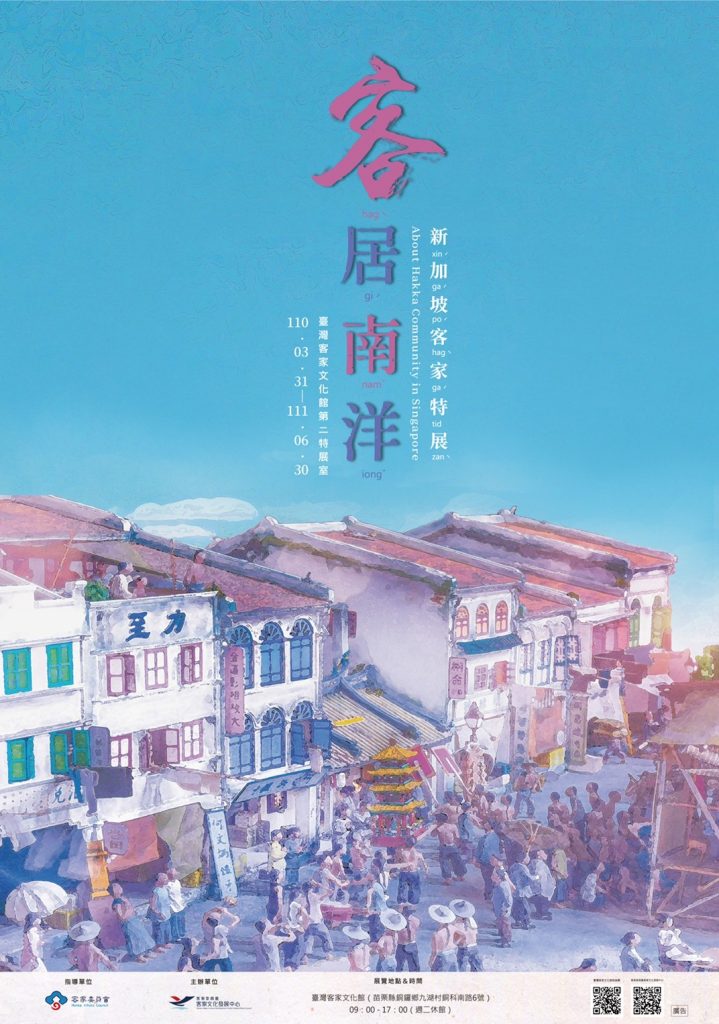 「客居南洋︰新加坡客家特展」以歷史背景作為序幕,講述客家移民在新加坡的生活、會館組織、信仰、產業,乃至與在地文化融合的新面貌。特展匯集自新加坡客家會館的文物及珍貴照片等進行展示,透過情境造景還原當時的街景樣貌,對於熱愛文化體驗的民眾是相當難得的機會。