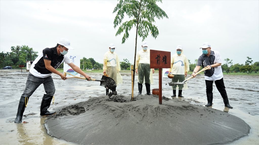 楊長鎮也特別到預計明年完工的屏東內埔六堆紀念公園巡視,並由六堆各堆鄉區長分梯次種下象徵六堆客庄與土地永續鏈結的6棵楝樹;現場雖有雨勢,但楊主委表示,久旱適值天降甘霖,代表福佑六堆,也可讓園區植栽獲得充足的水份成長茁壯;公園佔地3.9公頃,規劃有多功能集會所、共融遊憩設施與盤花公園,並選擇六堆常見香花植物作為主要景觀植栽,希望透過種植六堆地區日常盤花祭祀素材及在地元素,以低度開發的自然方式傳達六堆客家敬天愛土及對先賢的敬意。
