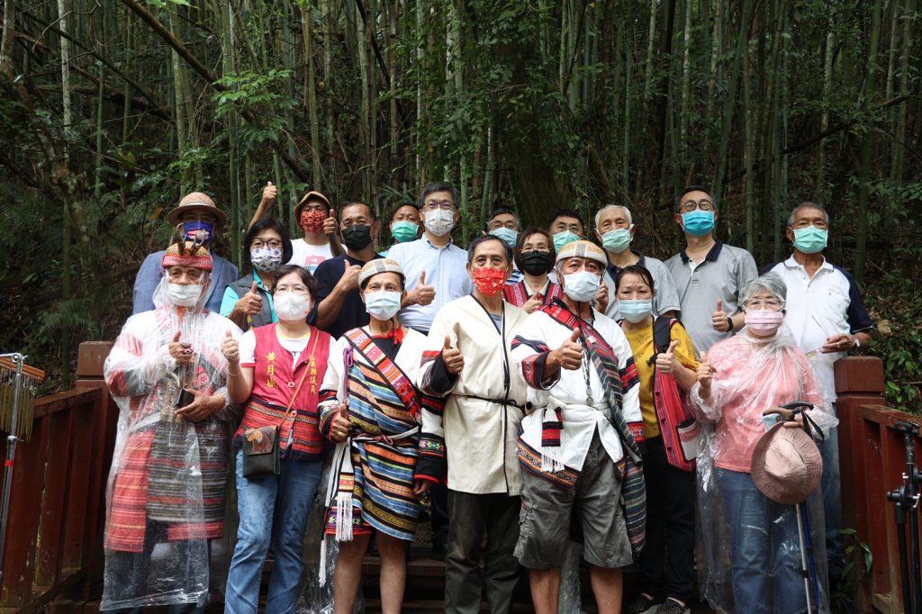 客家委員會為共同響應8月1日全國原住民族日,特以原客共築之苗栗大窩雅悠圳作為故事背景,拍攝客家向原住民族致敬宣傳短片。今(31)日特別邀請片中主角泰雅及客家後人,黃清貴先生與羅文賢先生重回雅悠圳,與客委會主任委員楊長鎮及原住民族委員會副主任委員林碧霞,共同揭開「雅悠圳」紀念碑石,期勉大家飲水思源,常念水「原」頭。