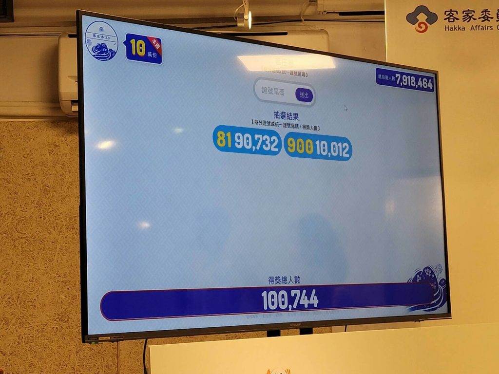 客家委員會於今(14)日下午3點30分,完成第一梯次客庄券2.0抽籤,抽出身分證末2碼81及末3碼900,共10萬744位幸運兒中籤,每人可獲得每份面額500元客庄券,中籤名單將在明(15)日上午8點30分起,公告於行政院振興五倍券官網(https://vhpi.5000.gov.tw/)及發送中籤簡訊通知,接下來連續3週的每週四,都將辦理「客庄券」抽籤,共計發出40萬份客庄券,並於最後一次抽籤時(11月4日)舉行公開儀式暨用券記者會,宣告客庄券用券時間;尚未登記客庄券的民眾,在10月29日前都可以於行政院振興五倍券官網登記。