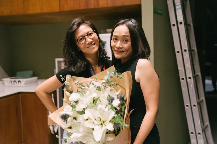 得獎後的徐麗雯,當天專訪結束,還要趕緊回家,馬不停蹄的趕寫劇本,此外,她在今年6月多疫情期間,已完成了替六堆300紀念系列「六堆庄頭劇場-《樂土》、《火燒庄》」編寫的劇本,她以六堆女兒的身分細說家鄉的故事,「六堆庄頭劇場」裡,代表前堆-麟洛地區的《樂土》一劇中,談到象徵閩客和諧的王爺奶奶傳說,也談到過往許多人不願觸及傷痛的戰俘營…等內容,徐麗雯企盼帶領觀眾透過《樂土》,一同找到生命的動力和與土地的連結。而在另部代表前堆-長治地區的《火燒庄》劇中,徐麗雯則用另一種角度反思戰爭的犧牲意義,並連結到思考現代人類遭遇的困境及敵人何在。預計於111年4月9日起展演,歡迎想一探六堆在地故事、反思現代意義的鄉親,千萬不容錯過!