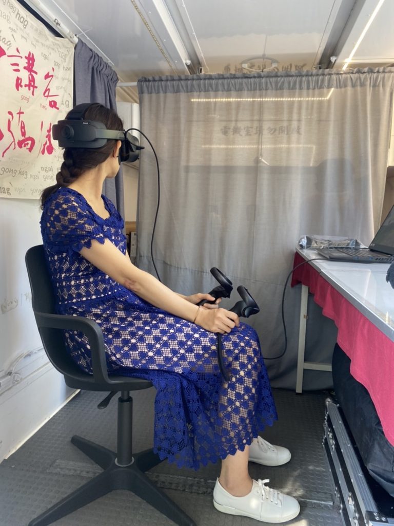 客傳會表示,今日除了有現場的VR體驗,記者會外面,也出動深入全國客庄、甫得廣播金鐘獎「創新研發應用獎」的靛藍色的講客號,車上搭載VR體驗設備,邀請到金鐘視后吳奕蓉登上講客號,在車上體驗VR特有的臨場感技術,吳奕蓉體驗完後,邀請大家一定要親自體驗,這套走在時代尖端的現代新客家VR技術。
