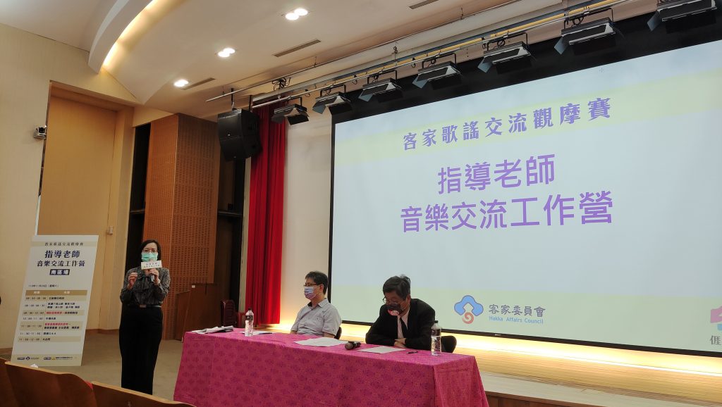 今日一早的「指導老師音樂交流工作營」國立臺北藝術大學音樂學院教授吳榮順現場分析、教唱原住民、河洛語、客語三種歌謠,最後以「美濃小調」結尾,而這首美濃小調抑揚頓挫的優美音韻,讓現場客家歌謠指導老師們驚豔不已。