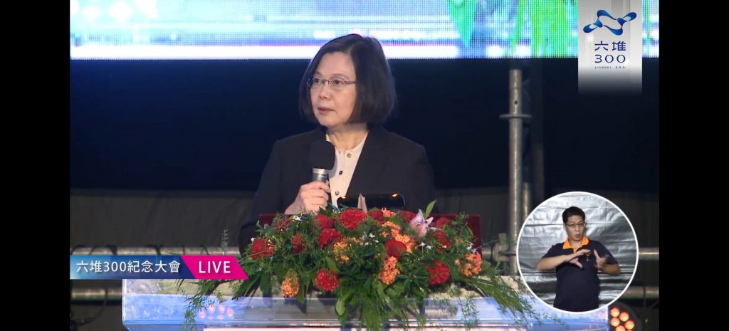 蔡總統表示,2年前到忠義祠參拜,在忠勇公前做出承諾,六堆建堆三百年時,要用國家級規格辦理慶典、找回六堆人的光榮感。今天「六堆300紀念大會」,是三百年來第一次全六堆鄉親的大會師,具有重大歷史意義。