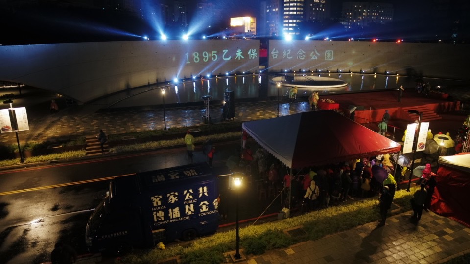 1895乙未保台紀念公園今(26)日晚間於桃園市平鎮區舉行開園儀式,雖然現場氣溫濕冷飄細雨,客家委員會主任委員楊長鎮、桃園市長鄭文燦及客家公共傳播基金會董事長陳邦畛等貴賓,與鄉親們齊聚開園儀式,搶先走訪公園內各項設計,參觀位於地下室的1895常設展覽,期待隨著紀念園區開園,能帶起臺灣人共同守護鄉土的認同感,此外,客傳會也出動講客號及空拍團隊,由講客廣播電臺節目「後生來理家」主持人張美鳳、涂世宗,向大家介紹紀念公園的意義,同時,空拍團隊也升空空拍機,帶大家從夜空中俯瞰,紀念公園坐落平鎮的絕美夜景。