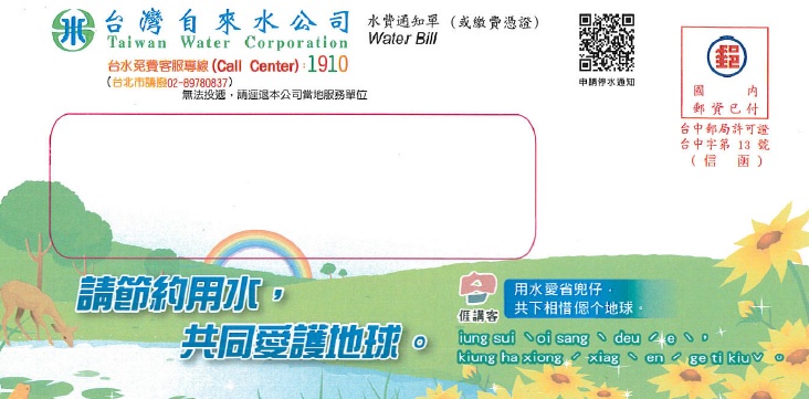 客家委員會今 (17)日發布新聞, 要大家看看家中水費和電費的帳單信封,是不是出現客語文字圖樣!客家委員會表示,為了響應1228還我母語運動紀念月,特別與臺灣自來水公司及臺灣電力公司合作,在帳單上刊出省水節電的客語文字,號召全臺民眾一起來「講客」。此外,中華郵政公司也在上(11)月24日發行「客庄節慶郵票」,介紹臺灣客庄民俗慶典活動,讓民眾感受客庄人文風情。