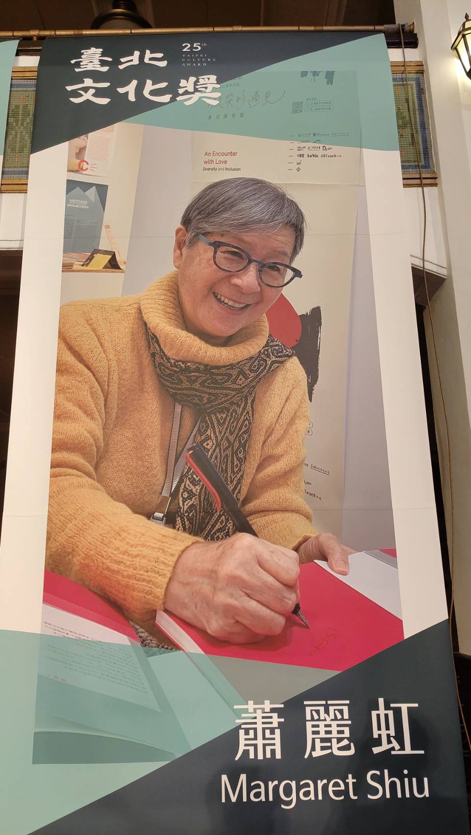 頒獎典禮中,本屆評審代表簡秀枝首先悼念得主之一的蕭麗虹老師,不捨蕭老師於今年與世長辭,文化藝術界痛失瑰寶,但香港的女兒、臺灣媳婦蕭老師秉持「用買菜的錢,收藏藝術品,幫助藝術家」的精神,卻永遠傳承給無數後輩,也帶領了臺灣、臺北的藝術文化走向了國際,接下來,簡秀枝也介紹得獎者黃心健,55歲的黃老師是年輕優秀的客家子弟,擅長透過VR虛擬實境技術,不斷與時代俱進的展演創作作品及內涵,成功讓國際看見臺灣多元文化,更將臺灣藝術文化和國際接軌,因此從多位競爭激烈的藝術家中脫穎獲獎。