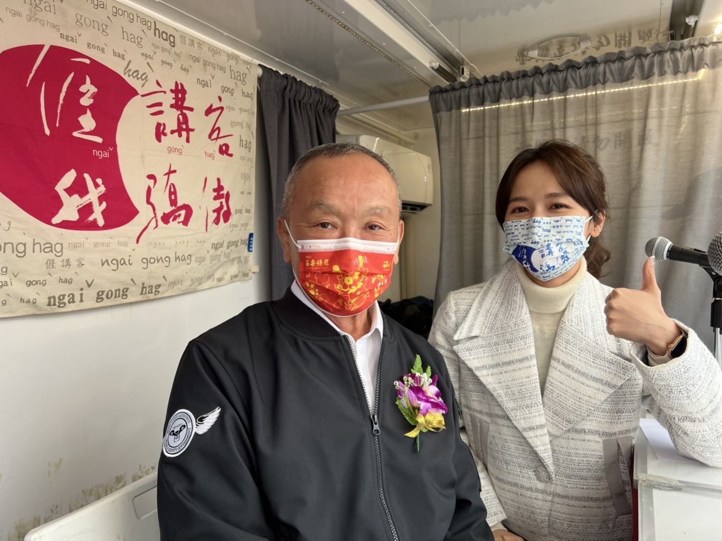 今日一早講客號到玉清宮廣場前,特別將節目「客家妹來打卡」搬到現場,由客家妹陳明珠訪問苗栗縣長徐耀昌、苗栗市長邱鎮軍、玉清宮董事長魏俊傑等人,其中,邱市長指出,年輕時曾是舞龍隊的成員,才明白舞龍第二位的位置,是最需要出力的位置,擔任市長後,積極將客家人特有的舞龍文化及龍神文化結合,就是希望每年熱鬧的苗栗火旁節慶中,能讓大家進一步認識客家文化的魅力!