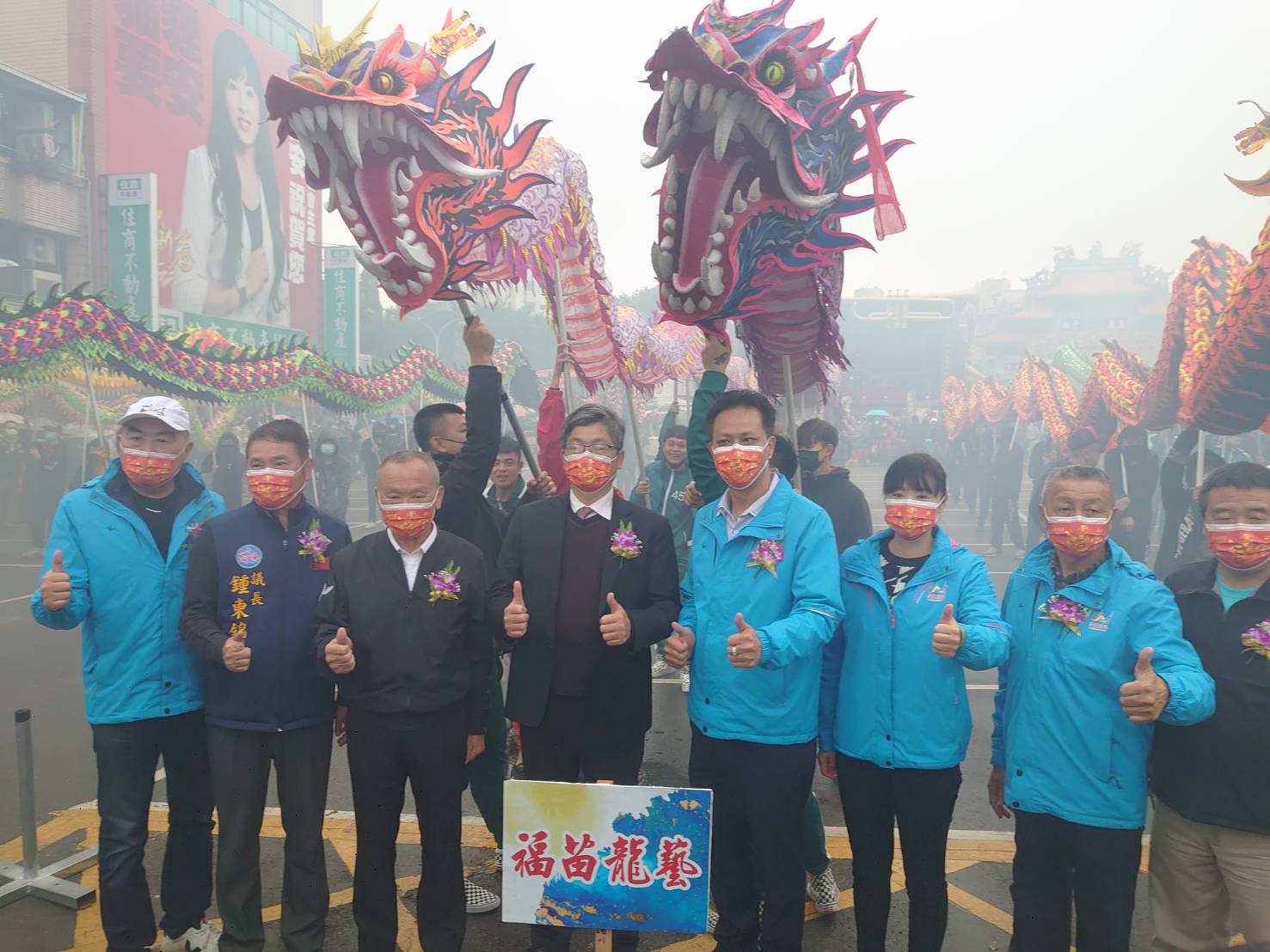 五彩祥龍蟠踞齊聚苗栗市玉清宮廣場前,在開光點睛儀式完成後,代表今(111)年的「客庄十二大節慶」之一「2022苗栗火旁龍」系列活動,正式熱鬧展開。客家委員會主任委員楊長鎮今(9)日上午前往參加祈福及點睛儀式,祈求龍神庇護臺灣民眾平安順利,此外,金鐘講客號以及客家妹陳明珠,也在現場為大家直播現場「貓裏客家龍競技」比賽,邀請多位嘉賓上講客號暢聊火旁龍的精采故事!
