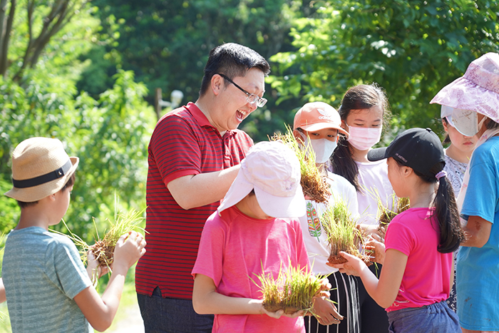 這次蒔田活動的四個主題,除了1小時踏入田中央的親身體驗,還會讓小朋友認識後續手作蒔田,秧苗成長後的120天稻作教育歷程,讓小朋友期待稻苗,逐漸成為結實累累稻穗的過程。