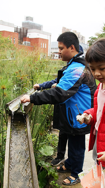 民眾可以透過竹葉小船隨灌溉水流動,來認識梯田的水循環。圖片/臺北市客委會提供