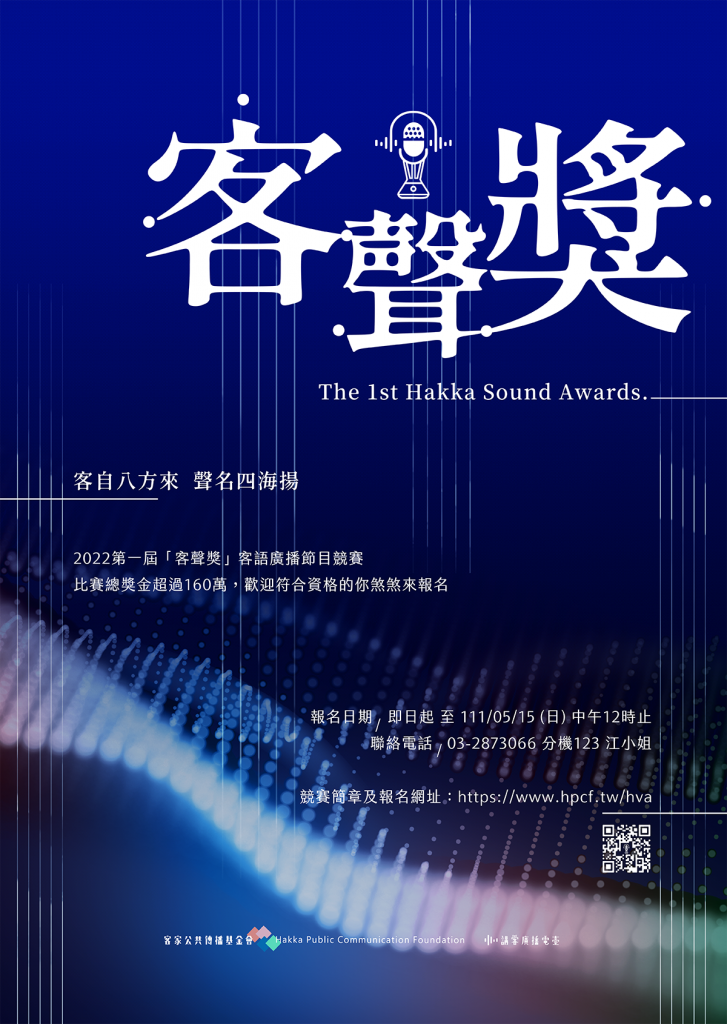 【生活中心/綜合報導】客家公共傳播基金會舉辦客語廣播節目競賽活動「客聲獎」,8大競賽項目總獎金超過新臺幣160萬,更有超過一百個入圍獎項,入圍即可獲得新臺幣2,000元獎金。客傳會表示,舉辦該獎項是為鼓勵「客語」參與廣播,並提供各級院校學生能夠學以致用,激發創意製作廣播節目,培養廣播相關人才,發揮客語廣播文化傳承及教育功能,「客聲獎」報名時間自即日起至5月15日中午止。