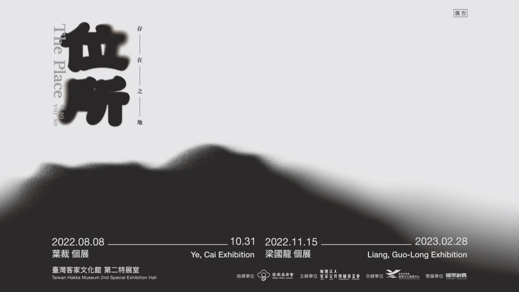葉裁和梁國龍兩位客籍攝影家,長期在地方以影像參與臺灣社會脈動,在臺灣客家文化館第二特展室的雙人展以「位所 The place」爲主題,展出攝影家按下快門的瞬閒意圖,透過攝影表達在地的敘事觀點及客家身分認同,對人群對士地對所處生活世界的冷靜凝視,影像不僅再現了觀者以攝影爲志業的生命價值,更證成了拍攝對象臺灣社會變遷及集體記憶的光影軌跡。