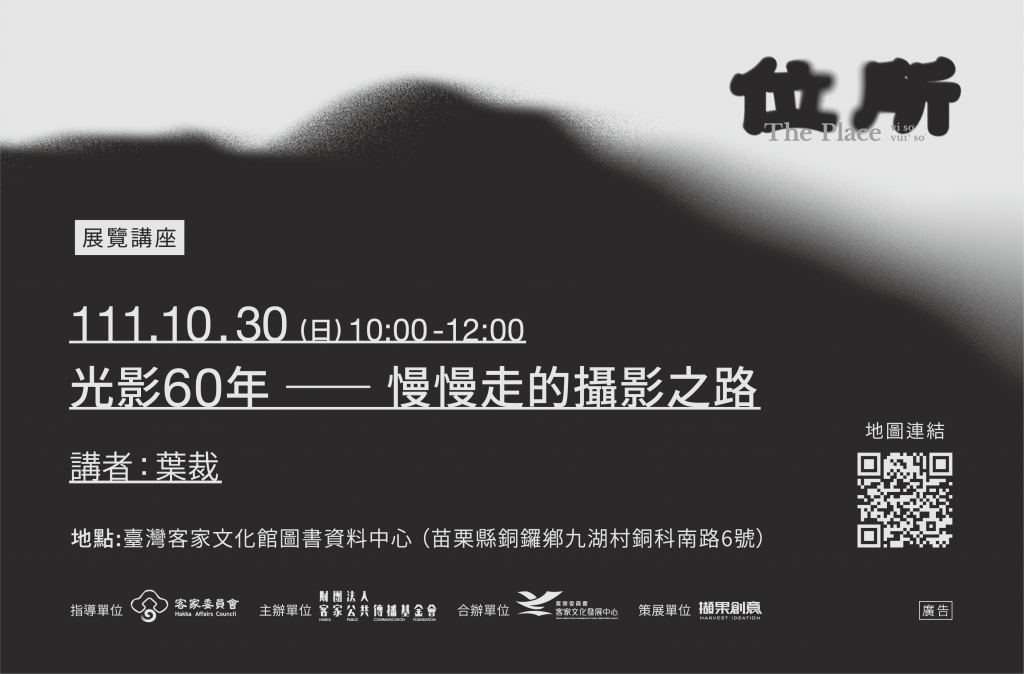 10月30日上午10點在臺灣客家文化館圖書資料中心,我們邀請了正在第二特展室展覽近60幅作品的葉裁,歡迎觀眾在展覽的尾聲,跟著他的生命腳步,回顧他攝影60年的世界行腳及內心風景个位所,共下來重新認識他所鍾情的客家鄉土文化紀實,藏在影像背後一則則微小卻真誠的故事。
