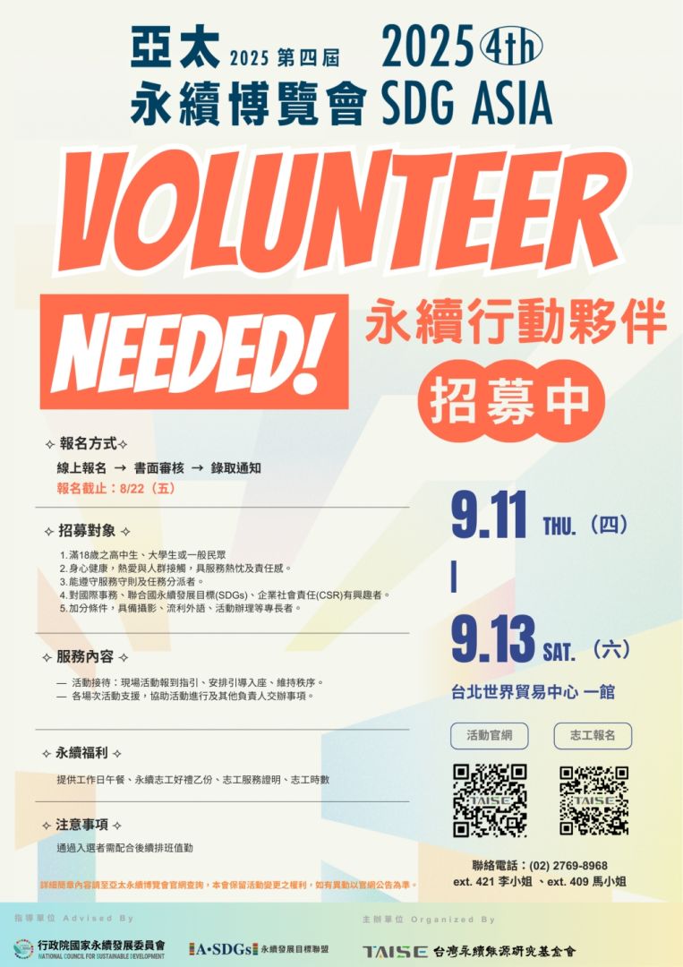 ★ 活動官網:https://www.sdgs-asia.com.tw/