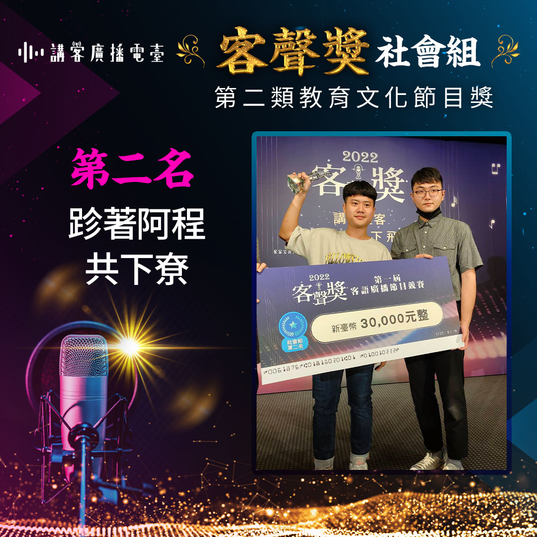 二、 教育文化節目獎:以客家語言、文化之傳播及傳承為內容,具有教育文化意義之節目。